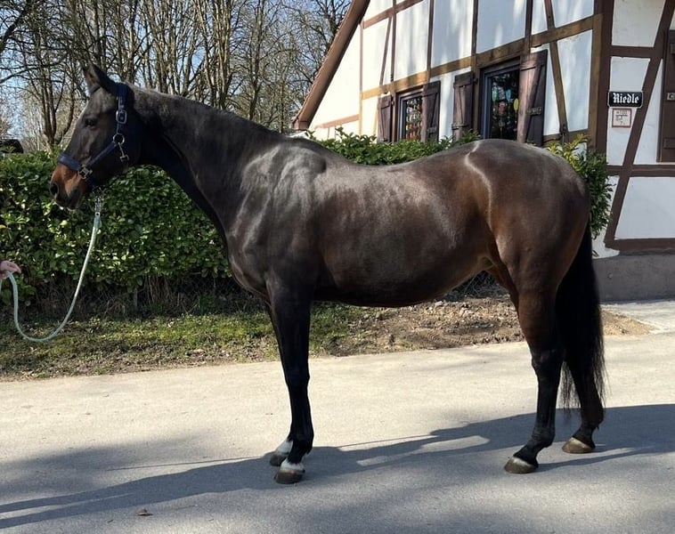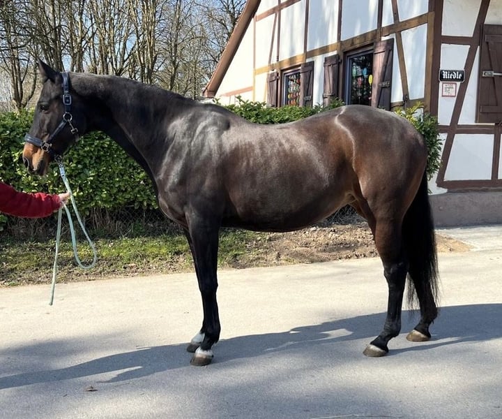 This elegant Württemberger mare was foaled in 2012 and impresses with her expressive appearance in a beautiful bay color. Standing at 16.1 hands, she combines size, elegance, and quality movement. She is confident in dressage up to level M and has competed at shows up to level L. She has won multiple A-level tests and placed reserve in L-level competitions. In show jumping, she was only competed up to E-level and was not further trained in jumping due to pregnancy. Due to a tendon injury in November, she is currently not rideable and should not be jumped again after recovery. Therefore, she is being offered as a companion horse with the option for leisure riding or breeding. Her pedigree is very interesting for breeding, with Boston as her sire and Acord II as her damsire. She has tested negative for PSSM2, which is also advantageous for breeding purposes. She is not suitable for beginner riders. Please feel free to contact me for more information or to arrange a viewing.