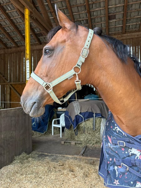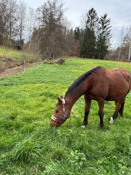 Elegant Württemberger mare for sale – perfect for leisure riding! This beautiful chestnut mare was born in 2011 and impresses with her friendly nature and versatility. Standing at 16.1 hh, she offers an ideal size for a variety of recreational activities. Whether for long rides, walks, or relaxed outings in the countryside – she is reliable and a true pleasure to handle and ride. She is healthy, well-cared for, and ready for new adventures with a loving owner. Unfortunately, Conny has sustained two operated suspensory ligament injuries in her front left leg and has experienced front limb laminitis due to her jumping career. If interested and for further information, I am happy to provide details. She will not be sold back into show jumping. Likewise, she is not suitable for very young children, as grass tends to be more interesting for her. I believe she has developed a saddle-related issue due to stress, as she may nip if the saddle is put on too quickly or if grooming is rushed. However, with patience, understanding, and gentle handling, this can be managed and improved. Price is secondary; I am only looking for a home where she can receive the love and care she deserves.