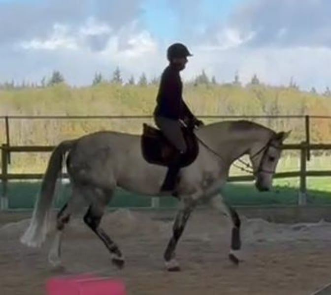 Castel de St Jean Z Graufalbe, 11 Jahre alt, 1,68 m, mit Blut im Blut und gut geritten. Sehr freundlich und respektvoll zu Fuß und im Dressurtraining. Geeignet für professionelle Reiter oder engagierte Amateurreiter im Springen, mit großem Potential (mindestens 140 cm). Zeigt etwas Charakter an den Sprüngen. Geboren im Stall, versteht sich jedoch nicht mit seinem Reiter. Hat die klassischen CSO-Prüfungen für 5- und 6-Jährige sehr gut absolviert. Wurde noch nie im Dressurtraining eingesetzt, besitzt aber schöne Gangarten, die es auch einem Amateur 1 mit jungem Reiter oder einem fortgeschrittenen Reiter ermöglichen würden. Videos online, wenn man seinen Namen eingibt. Herkunft: Vater: Castelino van de Helle, Holsteiner (nach Cassini I) Mutter: Kabyl des Cresles, Selle Français (Concorde x Verdi), Abstammung von Diamant de Semilly. Besichtigung in der Nähe von Dijon möglich. Weitere Informationen telefonisch.
