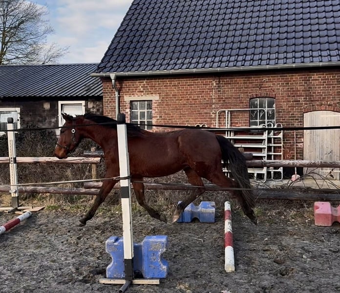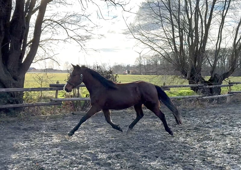 Alter: 3 Jahre Größe: aktuell ca. 158 cm Geschlecht: Wallach Haltung: Offenstall in gemischter Herde Eingetragener Zangersheider Abstammung: Quintos de Trebox (Quickly de Kreisker x Carthago Z) x Neos van‘t Vossenhof Z x Liberator Ausbildung: altersentsprechend gefördert, bisher nicht angeritten Seit er abgesetzt ist, bei uns! ⸻ ⭐ Beschreibung Dieser vielversprechende junge Wallach bringt alles mit, was man sich für die Zukunft wünscht: eine tolle Springabstammung, ein klarer Kopf und eine sehr solide Grundausbildung. Er wächst im Offenstall in einer gemischten Herde auf – bestens sozialisiert, robust und ausgeglichen auf Grund seiner Herkunft aus der Thüringeti. Er zeigt bereits jetzt eine gute Körperkontrolle, viel Ballance und eine angenehme Mitarbeit. Für eine weitere Förderung im Sport oder ambitionierten Freizeitbereich ist er absolut geeignet. Wer Qualität sucht, ist hier genau richtig. ⸻ Besondere Merkmale • korrekt gebaut • freundlich, neugierig, klar im Kopf • gute Grundgangarten • super Entwicklungspotenzial fürs Springen • sozialverträglich und unkompliziert im Umgang