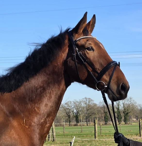 Denver is currently 1.76 meters tall (and he is still growing). He is a Zangersheide gelding sired by Don VHP Z N.O.P., with lines from Diamant de Semilly, Le Tôt de Semilly / Be Hooney Moon, Freestyle VD Wolfsakker, and Querlybet Hero. We can gladly send his detailed pedigree via WhatsApp. Denver is a horse with great potential for show jumping. With the right training, he can reach higher levels of competition. He is still quite green and has room to develop. :-) He is already familiar with lunging, and a rider has sat on him three times—he was very calm and well-behaved during these sessions. If desired, we can also start riding him under saddle, which is no problem. Despite his size, he is incredibly well-behaved. Truly remarkable. A current, thorough veterinary exam is available. If you're interested in videos, please contact us directly via WhatsApp at 0177/2721831. For more information, we look forward to your call. :-)