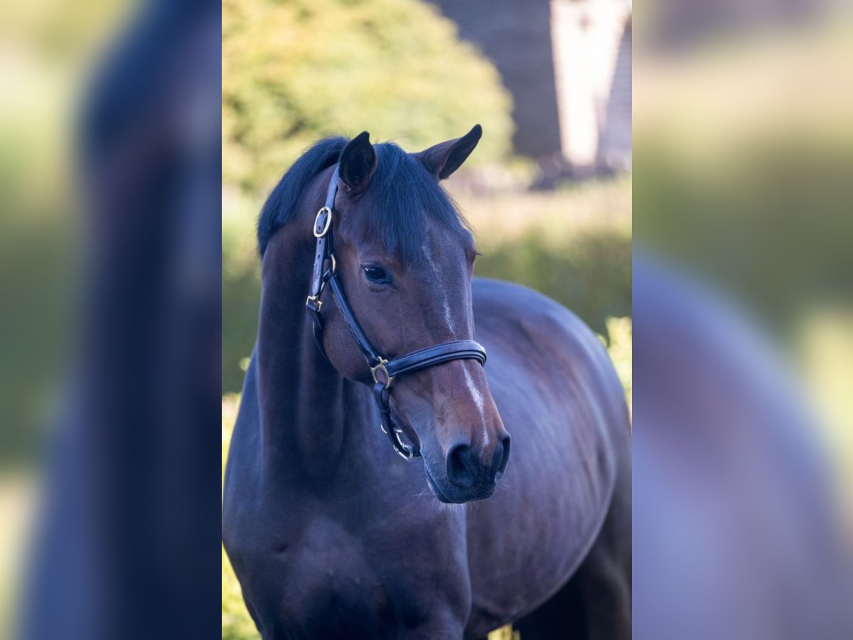 This attractive 4-year-old dark bay gelding is a modern, well-built sport horse with a correct and balanced conformation. Standing approximately 160 cm, he is registered with Zangersheide and comes from a proven performance pedigree. He is by Calvino Z (Calvin Z × Easanette), a sire known for producing athletic, rideable horses with scope and good technique. On the dam line, he is out of a mare by Gino H, descending further from Leuthen, Landgraf I, and Electro, which adds proven jumping blood, soundness, and rideability. The horse has recently started working under saddle and shows a willing and cooperative attitude. He is uncomplicated, learns quickly, and remains calm and well-mannered, both in the stable and during work. His mindset makes him suitable for further development by a professional rider as well as an ambitious amateur. Veterinary examination, including clinical inspection and X-rays, shows no significant abnormalities. The horse is assessed as having a normal medical risk.