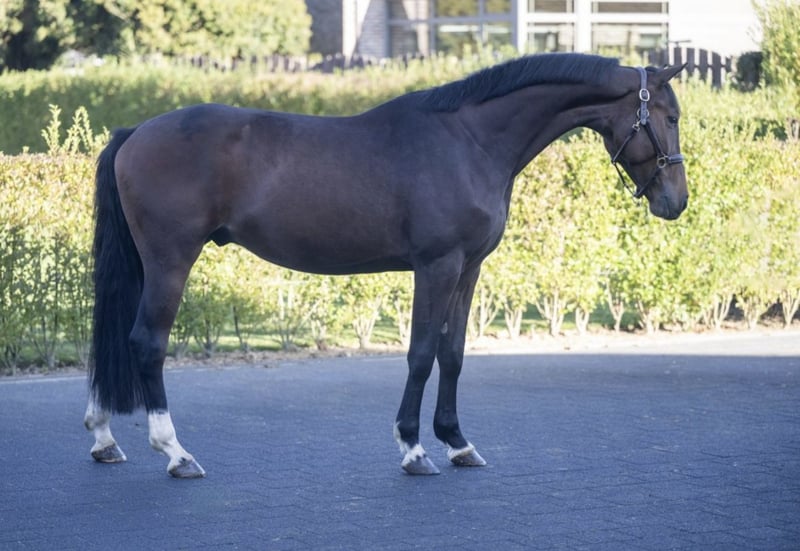 Ce joli hongre de 4 ans, de robe baie foncée, est un cheval de sport moderne, bien construit, avec une conformation correcte et équilibrée. Mesurant environ 1,60 m, il est inscrit au stud-book Zangersheide et possède un pedigree de performance éprouvé. Il est par Calvino Z (Calvin Z × Easanette), un étalon réputé pour produire des chevaux athlétiques, maniables, dotés de scope et d'une bonne technique. Côté maternel, il descend d’une jument par Gino H, elle-même issue de lignées comprenant Leuthen, Landgraf I et Electro, apportant ainsi du sang de saut éprouvé, de la solidité et de la facilité de dressage. Le cheval a récemment commencé le travail monté et fait preuve d’une attitude volontaire et coopérative. Il est simple, apprend rapidement et reste calme et bien élevé, tant à l’écurie qu’en selle. Son tempérament en fait un bon candidat pour un développement ultérieur par un cavalier professionnel ou un amateur ambitieux. L’examen vétérinaire, comprenant une inspection clinique et des radiographies, ne révèle aucune anomalie significative. Le cheval est considéré comme présentant un risque médical normal.