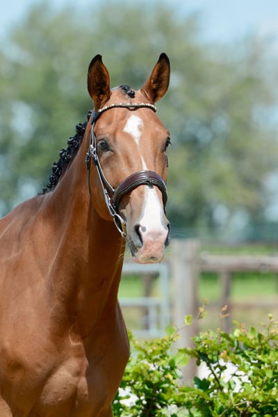 Cloud van de Zietfort Z is a sturdy, large gelding standing 1.74 meters tall. Born in 2021, he is currently four years old. Cloud has a cheerful and affectionate personality and is incredibly sweet. He boasts striking looks with his three tall white legs. This gelding joined us at the stable as a three-year-old and enjoyed a year in the young horse paddock before we began training him. The sport lineage of this horse comes from his grandmother Vupina. She produced Bon Coeur, who has offspring including Fiarabo (1.60m jumping), Interessant van de Zietfort (1.50m jumping), and Jolet van de Zietfort (1.45m jumping). Cloud van de Zietfort Z is ridden four times a week, combining dressage work and jumping. He is easy to ride and quite well-behaved. During jumping, he maintains a consistent pace and does not tend to rush, providing the rider with a steady feeling. He can change leads left and right over the poles but finds parcours jumping a bit challenging at this stage. He is best suited for an amateur rider who is willing to continue working with him. We also believe he would enjoy hacking out in the forest and could potentially make a lovely hunt horse. This horse is definitely suitable for a slightly taller and more experienced rider. In September 2023, he was given a clean radiological inspection, including his neck and back. The X-ray images and report are available upon request via email.