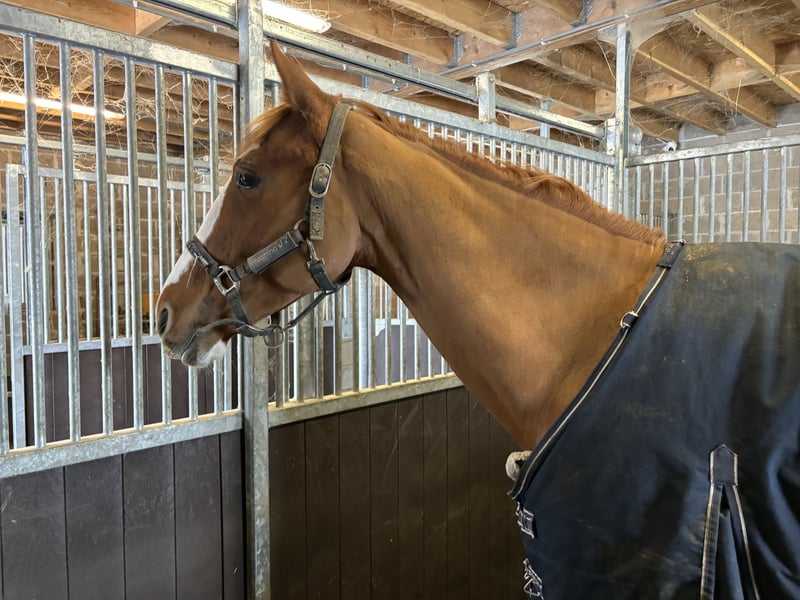Con grande rammarico, a causa di mancanza di tempo, è in vendita un castrone Zangersheider. Nato nel 2021, cerca la sua famiglia da cinque stelle. Alvarino viene venduto a un prezzo molto inferiore al valore reale a causa di una diagnosi medica. Dovrebbe essere ripreso in mano, poiché non ho ancora avuto il tempo di riprenderlo dopo la pausa. Può andare da solo nel bosco. Correre un piccolo percorso di ostacoli, saltare l'acqua e qualsiasi tipo di terreno. Potrei anche immaginarlo bene in campagna, dato che non si distrae facilmente. È regolarmente dal ferratore, dewormato e vaccinato. Conosce la guida, anche se attualmente lo stressa un po', ma con routine migliora sempre un po'. Può essere portato senza problemi anche a fronte di una piccola indennità. Per ulteriori informazioni, sono a vostra disposizione.
