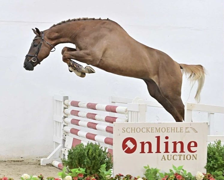 For sale: a beautiful Zangersheide gelding born in 2020. With a chestnut coat and an impressive height of 16.9 hh, he is an ideal partner for show jumping. Perfect for a beginner rider or as a future competitor. Feel free to contact me to arrange a viewing!