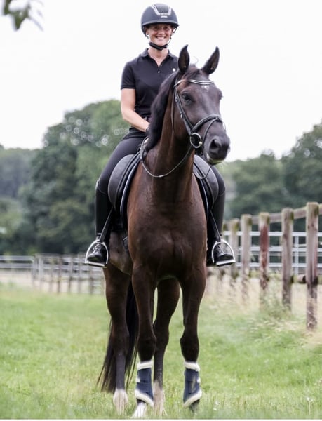 Handsome 5-year-old gelding with a special start in life. This tall, athletic sport horse by Caruso de Trebox out of a Dr. Doolittle (Donnerhall) mare was gently backed at the age of four and has already been placed in young horse classes. Despite his height of 17.5 hands, he has a compact, well-structured build and is easy and light to ride. In daily handling and under saddle, he proves to be straightforward, eager to learn, and always striving to do his best for his rider. We see this elegant dark bay as a fantastic amateur horse; with proper training, he also has the potential for the big arena. He spent his early months in the "Thüringeti," a wild horse project in Thuringia. There, he grew up in a herd in the wild natural environment without human influence. This unique beginning is still evident today in his calm demeanor, robustness, and uncomplicated nature. X-rays are available. A wonderful horse for the future! https://youtube.com/shorts/ilwylRtd_Y4?si=1WVlpTB2yWWq9pWr