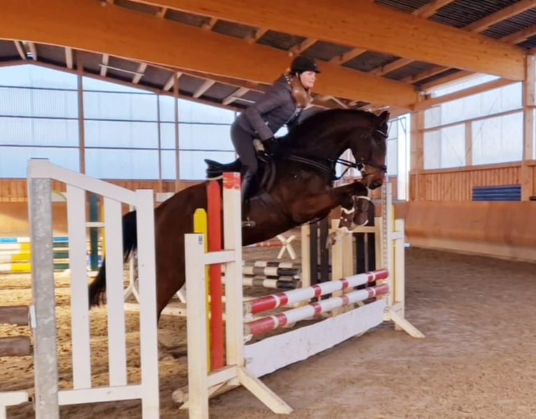 Zum Verkauf steht ein sympathischer 6-jähriger brauner Wallach von Origi d’O x For Pleasure x Don Juan. Aktuell misst er ca. 1,66 m und ist in Zangersheide eingetragen. Otto wurde 3-jährig angeritten, durfte anschließend noch einmal in Ruhe zu Hause nachreifen und befindet sich nun wieder im Beritt. Dabei zeigt er sich jederzeit sehr kooperativ, brav und unerschrocken. Er möchte seinem Reiter immer gefallen, denkt mit und versucht, alles richtig zu machen. Diese Einstellung macht ihn zu einem sehr angenehmen Partner in der täglichen Arbeit. Er verfügt bereits über erste Turniererfahrungen inklusive Platzierung und zeigt sich auch außerhalb des Vierecks bzw. Springplatzes sehr zuverlässig. Die vorhandenen Videos unterstreichen dies besonders schön, unter anderem mit einer jugendlichen Reiterin beim zweiten Mal Reiten sowie bei seiner zweiten Runde auf dem Geländeplatz, die er souverän und unkompliziert absolviert. Otto bringt damit beste Voraussetzungen als Nachwuchspferd für den Spring- und Vielseitigkeitssport mit. Er überzeugt durch seine Rittigkeit, guten Grundgangarten, seine positive Arbeitseinstellung und seine unerschrockene Art. Ein guter TÜV liegt vor, sowohl aus dem Alter von 3 als auch 4 Jahren. Zusätzlich sind Freilauffotos als 2-Jähriger vorhanden. Ein ehrliches, engagiertes Nachwuchspferd für Reiter, die ein braves Pferd mit Vermögen, Einstellung und Perspektive suchen.