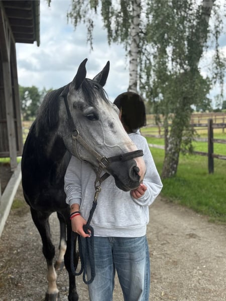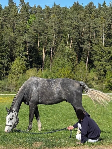 Con grande tristezza cerco una nuova casa per il mio incredibilmente affettuoso e socievole cavallo castrato di 6 anni, poiché non riesco più a trovare il tempo che merita. È arrivato da me a 4 anni e è stato addestrato con cautela con il supporto professionale, poiché come amatore ho meno esperienza nell'addestramento dei puledri. È facile da motivare, assolutamente desideroso di imparare e perdona anche i miei errori. L'ho già presentato sporadicamente fino al livello M*. È piazzato fino al livello L e nel SPF L ha ricevuto punteggi di 8. Ha un atteggiamento incredibilmente positivo e vuole sempre fare tutto nel modo giusto! Acqua, muretti, qualsiasi ostacolo – affronta tutto senza problemi. La maggior parte dei suoi errori è colpa mia e spesso mi sono arrabbiato per avergli tolto una piazzamento. Ma non è solo un cavallo da sport, è anche un vero amico e compagno. È incredibilmente tranquillo nel maneggiarlo, ma non è un pesce morto, può essere anche sensibile, ma in pochi secondi torna calmo (ad esempio quando enormi camion passano semplicemente accanto a lui). Anche andare a cavallo non rappresenta affatto un problema, sia in gruppo che da solo. È davvero un cavallo da rubare e ha molto potenziale per diverse esigenze. Per questo motivo cerco per lui un posto ideale, dove venga visto e trattato come un membro della famiglia a tutti gli effetti e amato di conseguenza. Per la prova di monta chiedo una tassa di 30€.