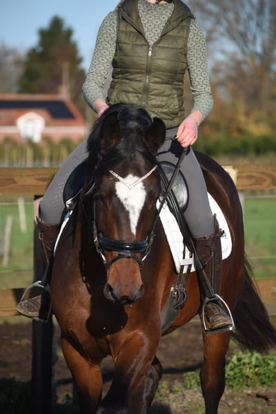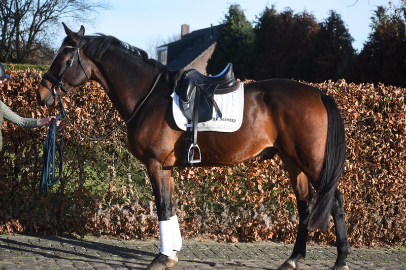 If you look at the particularly expressive head of Harley vd Kapel Z, you immediately know: this horse has a heart of gold. It’s as if you can see his soul. He was born on May 4, 2020, and stands approximately 16.1 hh. If you look closely at the photos, you’ll notice that he is gazing at his rider: “Am I doing it right?” Harley is a real people-pleaser. An incredibly sweet and kind horse, one in a thousand. He will never intentionally hurt you. We were able to take over Harley immediately from his breeder. He is well-trained and we consider him suitable for multiple disciplines. He is even calm enough for recreational riding here: on the road, in the trailer, in handling, the walk-in horse walker at the stable, and in the pasture. With guidance, we believe he would also be suitable for a beginner. Harley has a good pedigree: Heartbeat Z x Happy Wind d’Hof Ten Bos x Gurioso x Principaal. He comes with a recent clinical examination report, including blood tests, and a radiological report, all without any remarks. Harley is also completely free of (stable) faults. A horse of a thousand! Not a bargain purchase. Price upon request.