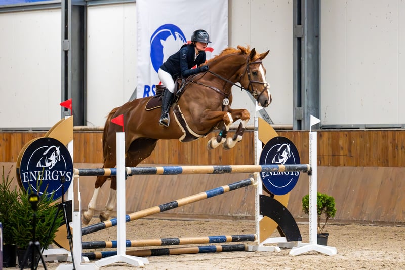 Pferd mit außergewöhnlichen Springfähigkeiten, seit weniger als einem Jahr unter dem Sattel, startet bereits erfolgreich in Springprüfungen bis 120 cm. Es ist leicht zu handeln und zeigt sich im Reitunterricht problemlos. Der Vater sprang bis 160 cm, die Mutter bis 140 cm.