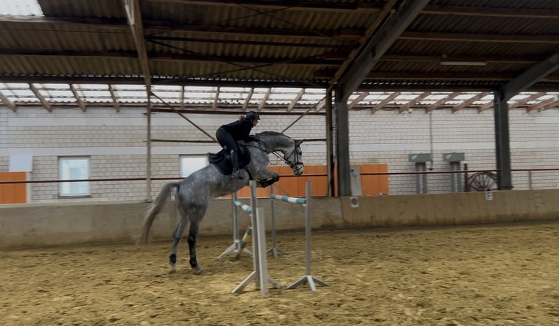 Zum Verkauf steht ein 6-jähriger Zangersheider Wallach von Quatar Z x Cento, der durch seine Qualität und sein Erscheinungsbild überzeugt. Der ca. 1,75m große, elegante Apfelschimmel besticht durch sein sehr freundliches und ausgeglichenes Wesen. Sein Schwerpunkt liegt im Springen, wo er sein Talent unter Beweis stellt. Der Wallach ist gut ausgebildet und zeigt großes Potenzial für den hohen Turniersport. Am Sprung zeigt er sich als sehr zuverlässig, springt aus jeder Lebenslage und parkt nicht. Er lief dieses Jahr seine erste Turniersaison und konnte sich mehrfach A platzieren und auch gewinnen. Ebenfalls konnte er sich direkt in seinem ersten L-Springen mit einer Note von 7,8 platzieren. Wir können ihn uns auch nach Testung gut als Voltigierpferd vorstellen. Bei Interesse oder für weitere Informationen stehe ich ihnen gerne zur Verfügung. Weitere Videos können auf Anfrage ebenfalls geschickt werden. Eine gute AKU von 2023 ist vorhanden und kann auch geschickt werden. Um Reittourismus zu vermeiden, nehmen wir für das Probereiten 20€, was bei einem späteren Kauf selbstverständlich verrechnet wird.