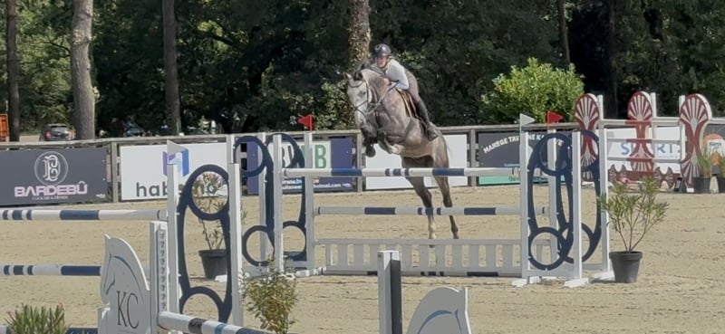 161cms 7yo gelding 🧬Aktion Pur x Caretano. His mother has bred 5 horses jumping 140m+ including Peder Fredricksons 160m jumper “Expression.” 🏅Results to 135m with an amateur girl. Very easy amateur horse, always jumps, very brave