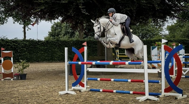 166 cm 7-letni wałach 🧬Cornet Obolensky x Caretano. Jego matka wyhodowała 5 koni skaczących na poziomie 140 m+, w tym skoczka 160 m Peder Fredricksona „Expression.” 🏅 Wyniki do 135 m z amatorską jeźdźczynią. Bardzo ostrożny i łatwy w jeździe.