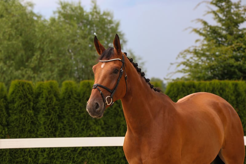 This 7-year-old gelding is a very calm and unflappable horse. He is in his prime and has received a highly versatile basic education. The gelding is familiar with leading lunging, sand paddocks, and turnout, both alone and in a group. Under saddle, he impresses with his composed and, above all, tranquil demeanor. He moves nicely in contact, is not overly sensitive in the mouth, and has a moderate amount of blood, which allows him to handle riders with less experience and more tentative aids very well. He can also be ridden with side reins. Ircos is familiar with longe work and is completely straightforward and fearless in that regard – we can also see him as a suitable candidate for liberty work! He is always motivated and eager to work, making him a good choice for an ambitious rider looking to further develop both themselves and their horse. Grid and cavaletti work, as well as small jumps, are no problem for him; he enjoys it and remains focused and motivated throughout. He also performs both flying and simple changes. He is an excellent horse to start jumping with. His absolute favorite activity is hacking out, which he does with incredible confidence and fearless composure. He handles every ride smoothly and provides his rider with a relaxing, enjoyable experience, whether alone or in a group. The gelding is completely street-safe, so there’s nothing standing in the way of a calm, relaxed trail ride. (See video) PLEASE WATCH THE ENTIRE VIDEO, INCLUDING THE TRAIL RIDE. • The height information is approximate and not precisely measured. • All descriptions are subjective assessments by the seller and are not guaranteed characteristics. X-rays show no findings, and a flawless clinical examination report is available. Interested? Feel free to contact us by phone at 015140555583. You can also reach us on weekends or public holidays.