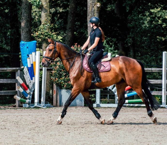 Elegant Zangersheide Gelding (Idéal de la Loge) – Qualität, Temperament und Potenzial Gelding | Geboren am 13.05.2018 | Dunkelbraun | Zangersheide | Belgien Ibero van het Bergerven Z ist ein qualitativ hochwertiges und arbeitswilliges Pferd mit einem äußerst angenehmen Charakter. Er ist brav im Umgang, sozial in der Herde und frei von Stallgebrechen. Auch bei Ausritten zeigt er sich ruhig und gelassen. Dank seiner feinen Einstellung und Zuverlässigkeit eignet er sich für eine breite Zielgruppe – sogar ein Anfänger kann ihn reiten. Er besitzt eine positive Arbeitshaltung und weigert sich kaum. Ein Pferd, das stets sein Bestes gibt und seinem Reiter Vertrauen schenkt. Ideal für einen Amateur, der ein zuverlässiges Pferd sucht, aber auch interessant für einen Reiter, der in den Sport weiter wachsen möchte. Abstammung: Idéal de la Loge x Conello x Coriano Z – starkes Zangersheide-Sportblut mit nachweisbaren Erfolgen im Springsport. Klinisch im Alter von 5 Jahren abgenommen. Kürzlich auch Röntgenfreigabe für den Sport erhalten. Aktuelle Blutuntersuchung vollständig in Ordnung. Wir sind die Erstbesitzer nach der Zucht, daher ist seine komplette Historie bekannt. Immer bestens gepflegt: regelmäßig entwurmt und geimpft, regelmäßige Zahnbehandlung, Hufschmied alle 6 Wochen und Osteopath alle 4 Monate (kürzlich behandelt). Ein korrektes, zuverlässiges und qualitativ hochwertiges Pferd, bereit für die weitere Ausbildung und viel Reitspaß. 📍 Weitere Infos oder Video auf Anfrage