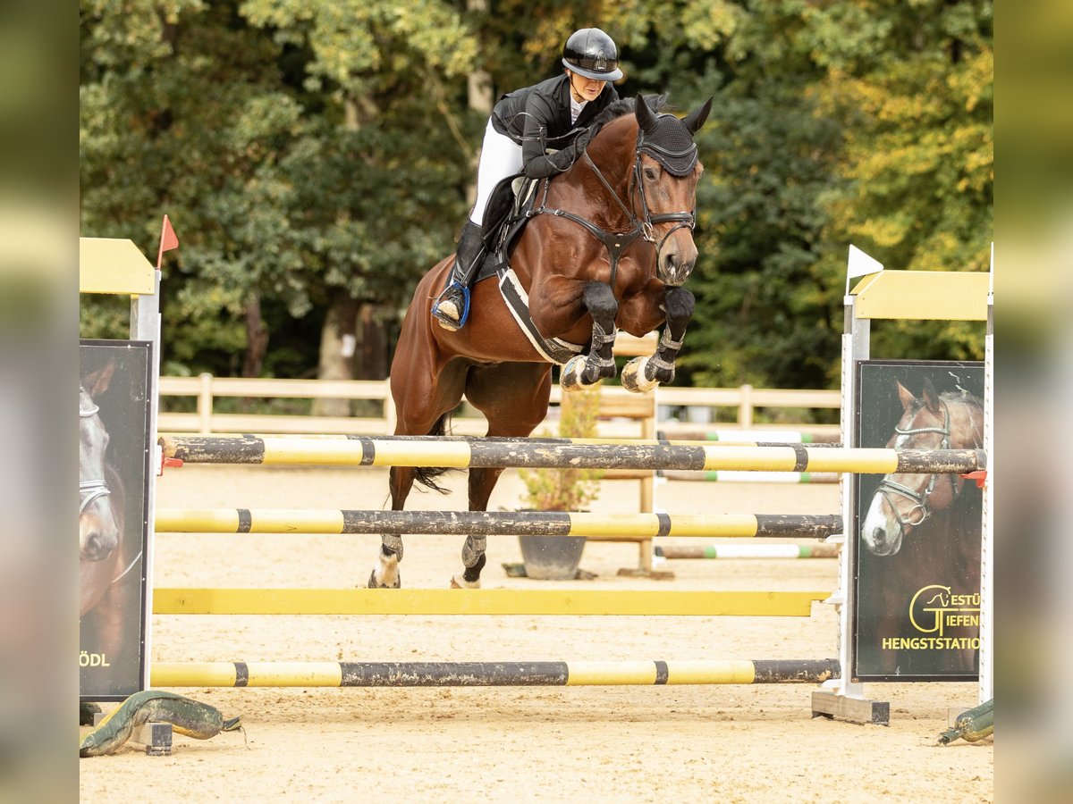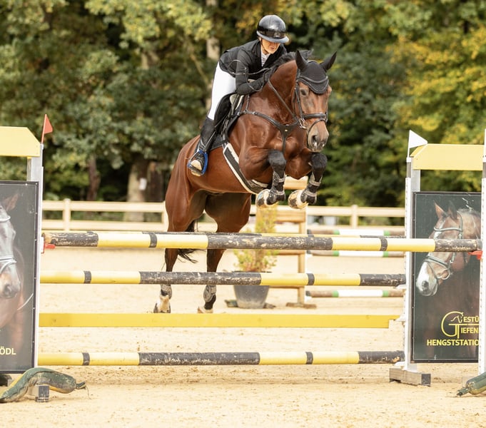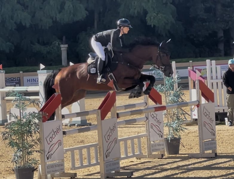 Chica is a 2016-born, bay Zangersheider Warmblood mare (approximately 16.1 hh) with a height of 168 cm. Her pedigree includes Hunters Carambole x Kashmir van Schuttershof - Nabab de Reve. The mare is trained up to M** level and has achieved multiple placings and wins in L- and M*-show jumping competitions. Under saddle, she demonstrates great willingness and lightness. Over fences, she impresses with her excellent attitude – she always wants to go to the other side, has plenty of go, and consistently provides her rider with confidence. In daily handling, Chica is well-behaved, shoe- and loading-friendly, and sure-footed in the field. She is very sociable and easy to get along with. Suitable for the ambitious amateur rider, but due to her energy level, not recommended for beginners.