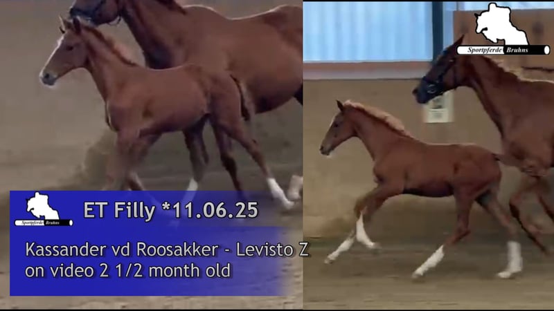 Oferujemy tutaj prawdopodobnie ostatnią klacz źrebaka naszej najlepszej klaczy hodowlanej Lene. Córka Lene "Call me Princess" odnosiła sukcesy na poziomie 1,60 m (S*****) i dwukrotnie startowała pod turecką flagą na Mistrzostwach Europy. Wnuczka Lene "Great Princess" odnosiła sukcesy na poziomie 1,55 m i brała udział w mistrzostwach Niemiec oraz zawodach Pucharu Świata w skokach. Ponadto, z tej udanej linii matczynej wywodzi się jeszcze kilka koni S (na poziomie 1,40 m i wyżej). Ojciec źrebaka, Kassander van de Roosakker, sam odnosił sukcesy na arenie międzynarodowej i jest znany jako udany reproduktor w hodowli koni skokowych. Sam źrebak, jak można zauważyć na materiałach zdjęciowych i wideo, jest bardzo atletycznym i typowym źrebakiem klaczy, na którego przyszłość czekamy z niecierpliwością. Zgodnie z genetyką, już widać w nim szczególny talent do skoków.