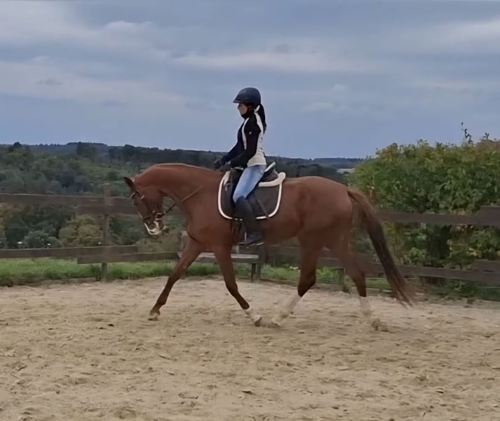 À vendre, cette jument très proche des humains, issue de Farbenspiel. Elle se distingue non seulement par sa beauté, mais aussi par son intelligence et sa volonté de performance. Elle est actuellement en cours de débourrage et se montre ici très peu impressionnée par le cavalier. Elle a une confiance incroyable envers l'homme et exige également ses câlins quotidiens. Elle a grandi sur de grandes prairies en communauté, où elle était dehors 24 heures sur 24 en été et avait un abri ouvert en hiver avec un accès quotidien à la prairie. Donc, ceux qui recherchent quelque chose de spécial ont trouvé le gros lot avec cette jument. Affectueuse, volontaire, intelligente et avec une tête bien faite.