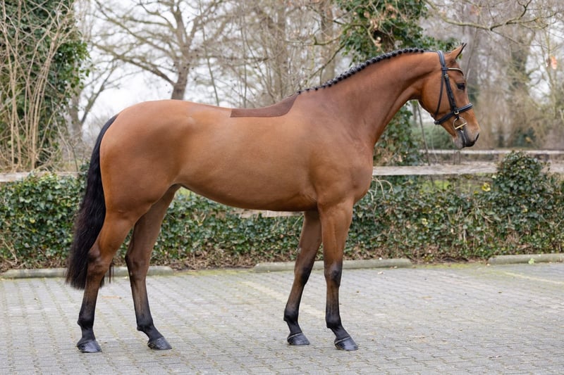 As a half-sister to no fewer than eight international showjumpers, Checkmate DXB Z is destined for a bright future. Her half-sisters Zaia di San Giovanni (s.Cornet Obolensky), ridden by Mac Cone, and Dynastie de Beaufour (s.Diamant de Semilly), ridden by Nina Mallavaey, are successful at the very highest level, while half-sister Diamantina Beaufour (s.Diamant de Semilly) has already placed at 1.55m-level under Valentin Besnard. Sire Casanova de Beaufour DXB competed at 1.45m-level with Anika Wilbers-Kuhn and has produced only a very limited number of offspring to date. Jerry Smit’s European Championship stallion Nadir di San Patrignano (s.Corrado I) also comes from this direct branch of Holsteiner line 42A-2.