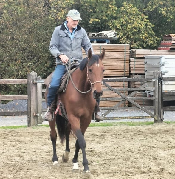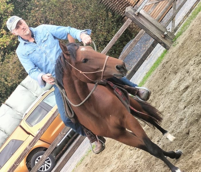 Sie ist eine dunkle Fuchs, im Sommer etwas heller, was ihr ein auffälliges und charmantes Erscheinungsbild verleiht. Ihre Bewegungen sind geschmeidig, und ihre Springtechnik verspricht viel für die Zukunft. Sie ist gut sozialisiert und zeigt eine freundliche, lernbereite Haltung, sodass sie sich unter dem Sattel schnell weiterentwickeln wird.