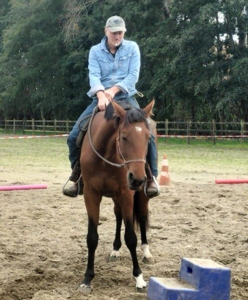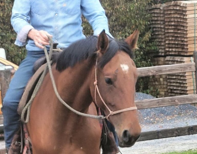 She is a dark chestnut, slightly lighter in summer, giving her a striking and charming appearance. Her movements are fluid, and her jumping technique shows great potential for the future. She is well-socialized and has a friendly, eager-to-learn attitude, ensuring she will develop quickly under saddle.