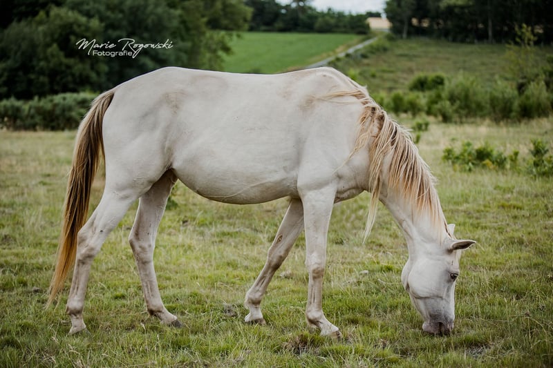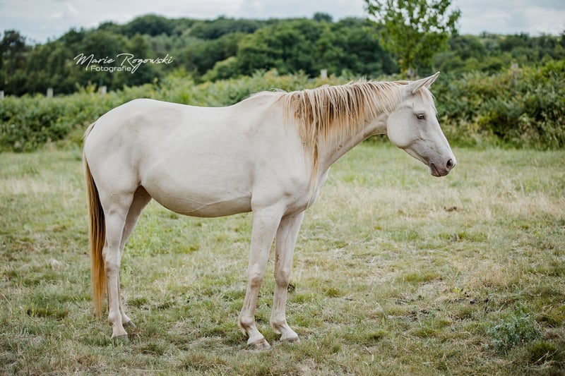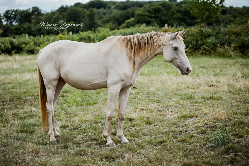 Zangersheide-Stute | geb. 2020 | Classic Cream Champagne (E/e, a/a, Ch/n) DELIKATESSE Z vereint auffällige Sonderfarbe mit bedeutender Dressurabstammung. Ihr Vater Desperados FRH war 2016 die Nummer 1 der Weltrangliste und zählt bis heute zu den erfolgreichsten Dressurpferden aller Zeiten -? sportlich wie züchterisch. Diese junge Stute zeigt sich sensibel, ausdrucksstark und verfügt über eine edle Erscheinung mit harmonischem Gebäude. Sie ist aktuell roh und kennt die Grundabläufe im Umgang. Aufgrund ihrer besonderen Genetik (Champagne-Trägerin) eignet sie sich auch für farborientierte Zuchtprojekte im gehobenen Dressurrahmen.