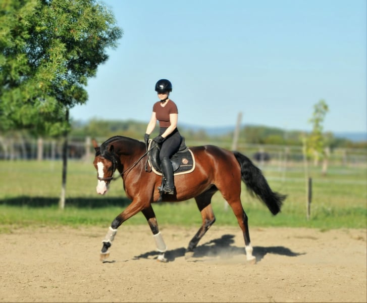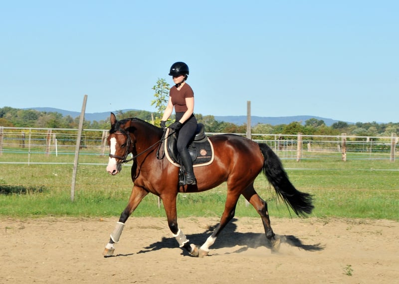 Aktuell befindet sich diese tolle Stute bei uns in beritt und ist auf einem soliden Reitpferdniveau geritten,Brav unkompliziert im Umgang und beim Reiten. Leichtrittig ,kennt Halle, Viereck, Ausreiten.springt kleine parkour.Sie hat schon ihren ersten Turnierstart brav gemeistert. Direkt aus Züchterhand!! Gesund,hat keinerlei Unarten.Aktuelle gute Rtg.bilder sind vorhanden Herdenverträglich kennt Boxen und Offenstallhaltung ,schmiede-und verladefromm. Die Stute steht derzeit im Offenstall und ist nicht geschoren! Probereiten nach telefonischer Terminvereinbarung möglich. Weitere Infos gerne per Tel.oder WhatsApp