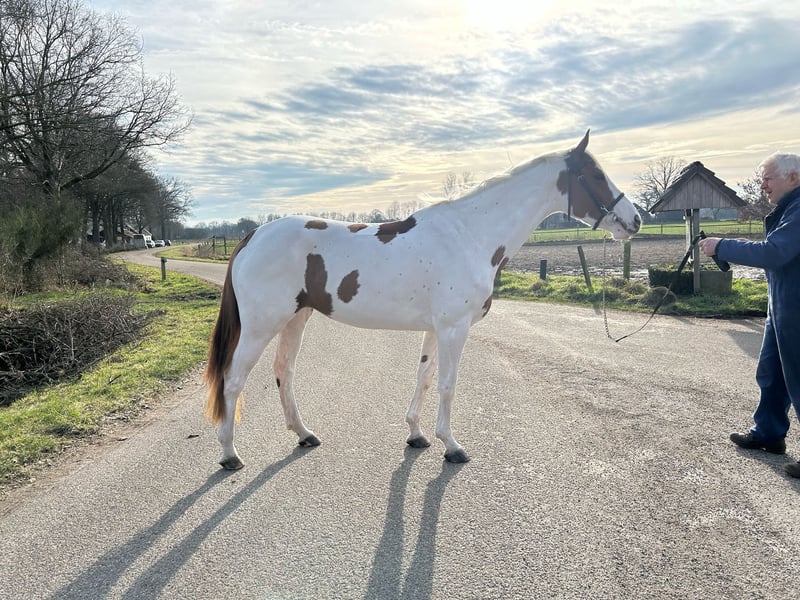 COCO CLACHARD (Clochard x Zirocco Blue x Quidam de Revel) Coco is a 4-year-old piebald show jumping mare with a height of 166cm. She is a mare with a kind and down-to-earth character, even under saddle. Currently, we are competing with her in the 1.00m, and she does this very well and is pleasant to ride in the course. In dressage, she is also well-behaved and easy to ride. 100% traffic-safe and very well-behaved in the woods. If you have any questions or are interested, please message, call, or email using the contact details below. 0682393901 Sleejenneke9@gmail.com