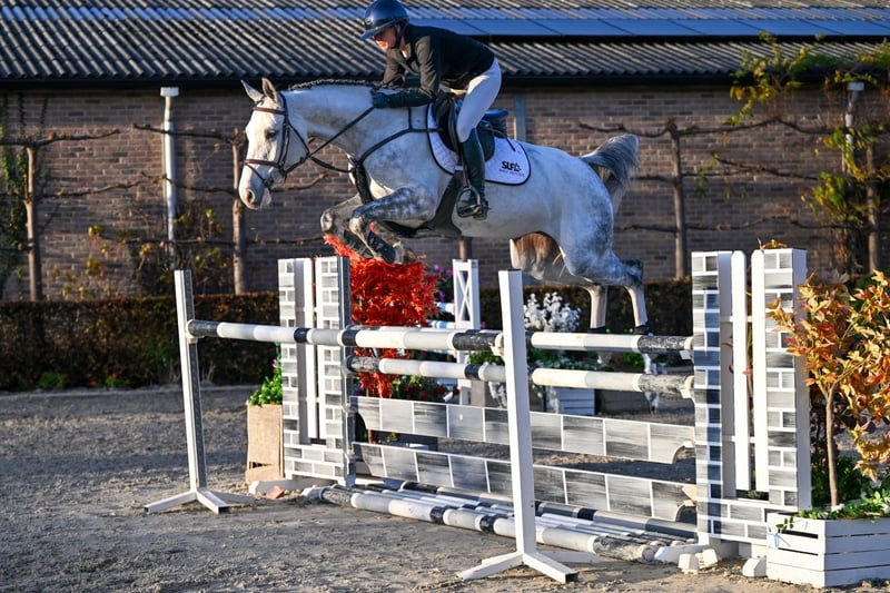 This five-year-old mare by Pegase van ’t Ruytershof belongs to the first crop of this exceptionally popular stallion. Her modern, eye-catching appearance immediately draws attention. A look at her dam line reveals why she shows so much quality: on the maternal side we find the well-known sires Concorde, Carthago, Farmer, and Ramiro Z. This strong family has already produced several successful sport horses, including Braveheart V (1.50m – Jake Saywell), Brown Sugar (1.60m – Hani Kamal Raij Basharat) and Bernadottie VDM (1.50m – Adelina Torres) — notable performers that underline the value of this lineage. Pegalottie fits seamlessly into this high-quality line. She is a modern, athletic mare with an elegant appearance and plenty of natural ability. Over the jumps, she shows an expressive technique that immediately stands out. She is willing, sharp in a positive way, and consistently displays an honest, cooperative character. Her canter is light and adjustable, making her very pleasant to ride. Combined with her correct way of going and her kind nature, she is a horse that already offers enjoyment today while also showing strong promise for the future. For anyone looking for a horse with true quality, a reliable character, and a lovely rideability, Pegalottie is an ideal partner. In the case of direct export to non-EU countries, VAT is no longer applicable (21% becomes 0%). If the export is delayed (but happens as soon as possible), the VAT will be refunded after we have received the official export document (which is drawn up by customs).