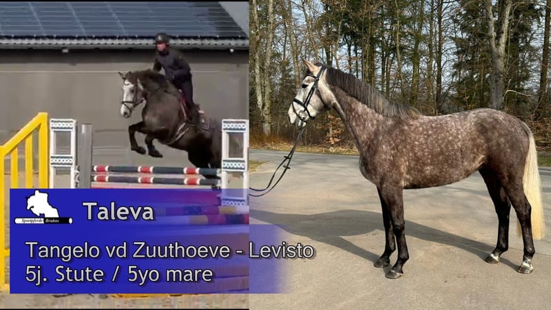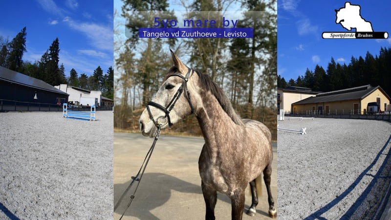 We are offering a charming mare from a highly successful bloodline with an interesting pedigree. The mare is a half-sister to the 1.60 m successful mare "Call me Princess." Her lineage is similarly performance-oriented, with Tangelo vd Zuuthoeve as her sire and Levisto Z as her grandsire. After foaling a foal named Beifuß at the age of four, she has now been backed, lunged under saddle, and is ready for her first competition appearances. Under rider, she is very straightforward, light to the aids, and eager over jumps. Her temperament is very loving, calm, and empathetic. This mare is well-suited for a versatile career in sport, breeding, or leisure riding. She would also make a suitable riding partner for young girls.