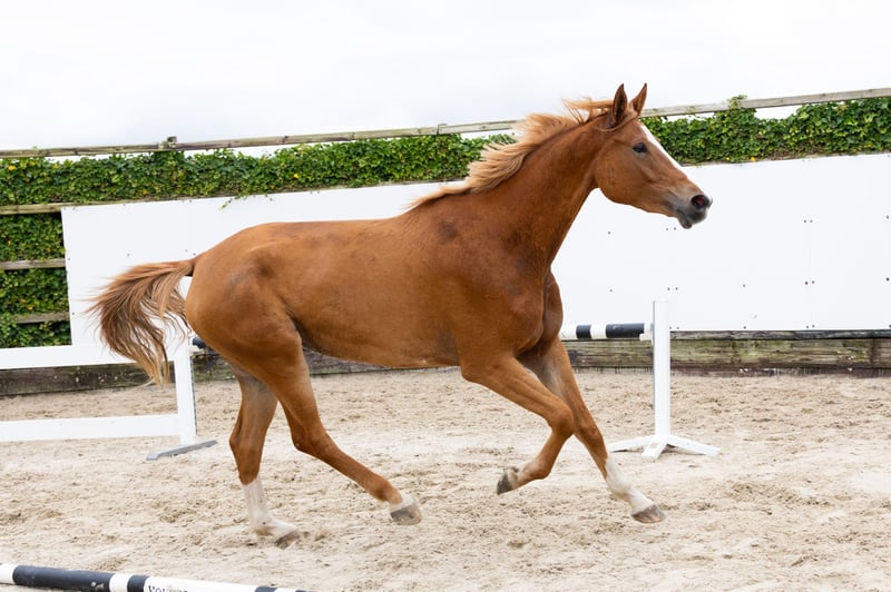 La yegua de salto de cinco años, High Gipsy K Z, destaca por su melena y cola rubias, así como por su talento y precaución. Su linaje es excepcional: Taloubet Z x Taloubet Z. El padre (y abuelo) Taloubet Z compitió a nivel internacional con Christian Ahlmann, incluso ganando la final de la Copa del Mundo. Además, es medio hermano de Nadal Hero & DB (1,60 m en Gran Premio) y Big Star jr KZ (1,55 m en Gran Premio). Los descendientes de Taloubet Z que compiten en 1,60 m incluyen a Aloubet KV, Taloubetdarco K Z y Tabalou PS. Su hijo aprobado, Take a Chance on Me Z, ha competido incluso en 1,65 m en Gran Premio. La madre, Taloubet’s Gipsy K (Taloubet Z x Jackson x Nimmerdor), compitió internacionalmente en 1,30 m y es hermana de dos caballos de salto entre 1,30 y 1,35 m. Proviene de la misma línea que el campeón olímpico Big Star. Este caballo proviene de la cuadra de uno de los mejores criadores de los Países Bajos, galardonado como Criador del Año por el KWPN. Taloubet y Big Star son algunos de sus productos de cría más conocidos. Los caballos de este criador han crecido en un entorno tranquilo y espacioso, pastando en manada en los prados y con tiempo suficiente para desarrollarse de forma natural. Nunca han sido sometidos a entrenamiento, solo se les ha colocado el cabezal, por lo que provienen directamente de la cría. Esto los hace especialmente interesantes para quienes desean criar y entrenar un potro a su propio ritmo. Son honestos, sin prejuicios y de pura raza, criados directamente por un criador de renombre.