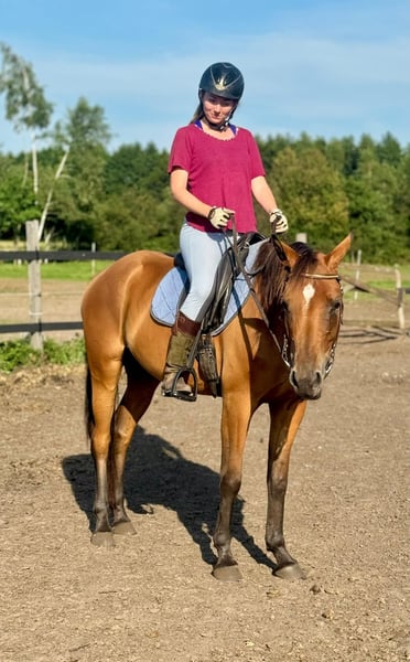 Six-year-old Zangersheide mare, a direct daughter of Corneta Oboleński (this year's number one stallion in the WBSFH world ranking), from a dam line that can boast another exceptional sire, Le Tot De Semilly, the sire of Diamant de Semilly. This impressive jumping pedigree is, however, housed in a relatively small horse. The mare currently measures approximately 156 cm at the withers. A unique and somewhat rare trait within this breeding line is her temperament, which combines intelligence and calmness. She was purchased directly from the breeder as a young horse, intended for equine-assisted therapy and work with children. In the future, we planned to test her breeding potential, but this was not realized due to the closure of the operation. Before that, she was ridden, broken in, and adapted for therapy work. For the past two years, she has been living peacefully in a pasture. She has never been mistreated, overexerted, or exploited. She trusts humans and seeks contact naturally. She continues to demonstrate great stability and a cooperative attitude. She is a "thinking partner" type, well-suited for work with people. At any time, she could return to under-saddle work or tasks involving children. Due to some signs of talent and rebound strength, we believe she could also be tested in sport with a light rider. The mare is already showing the first signs of spring estrus, but due to her compact build, she has not yet been tested or used for breeding. The buyer is free to use her in this regard as well. Modern reproductive techniques allow an ambitious breeder seeking excellent DNA to obtain offspring even from a small mare (ICSI or ET), without risking her life or health through direct breeding. The price reflects her outstanding pedigree, as well as her small stature and other aforementioned qualities. Negotiations are possible, provided the seller is granted the opportunity to obtain one embryo from the mare during the 2027 or 2028 season (details to be agreed upon in the contract).