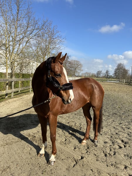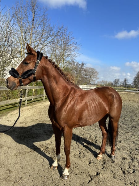 Romy is a beautiful, willing mare (born in 2020) with great potential. Her sire, Richebourg, jumps 1.60 m, and her dam's sire is also Parco. She foaled her foal in 2025 and was subsequently backed and started under saddle. She is being further trained as a promising show jumper. She would also be well-suited for eventing. We are looking for an ambitious new home with a gentle approach. She is being sold because, for the current owner, she has too much blood and potential to be a relaxed recreational horse. Please feel free to contact us for more information or videos.