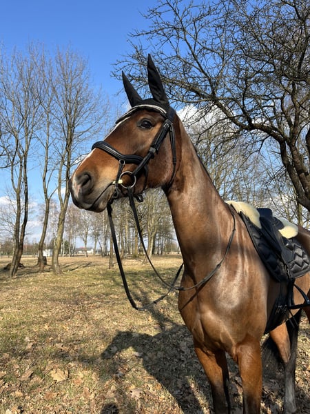 Na sprzedaż 7-letnia klacz rasy Zangersheide, maści gniadej, o wzroście ok. 168 cm w kłębie. Koń o bardzo dobrym rodowodzie, z doświadczeniem startowym i potencjałem do dalszego rozwoju w skokach. Klacz startowała w konkursach do klasy P, obecnie regularnie pokazuje się na parkurach 80–90 cm. W treningu chętna do pracy, dobrze reaguje na pomoce i pokazuje dobrą technikę skoku. Pod jeźdźcem pracuje energicznie, raczej nie jest koniem do pchania. Dzięki ładnemu, regularnemu ruchowi może sprawdzić się również w ujeżdżeniu lub jako koń do wszechstronnego użytkowania. Na zawodach bywa czujna na otoczenie, dlatego najlepiej odnajdzie się u pewnego i spokojnego jeźdźca, który poprowadzi ją konsekwentnie i pozwoli w pełni wykorzystać jej możliwości. Jest po prostu patrząca. W obejściu grzeczna, przyjazna i bezproblemowa w codziennej obsłudze. Zdrowa, bez przebytych kontuzji, w regularnym treningu. ✔ Regularna opieka fizjoterapeutyczna (co miesiąc) ✔ Regularnie werkowana i kuta na przody ✔ Bez problemu przy kowalu i w codziennej pielęgnacji Transport: wchodzi do przyczepy, sporadycznie potrafi pokazać charakter. Nie jest to koń dla początkującego ani dla dziecka – polecana dla jeźdźca doświadczonego, który szuka konia do dalszej pracy i startów. Po więcej informacji zapraszam priv.+48501180651