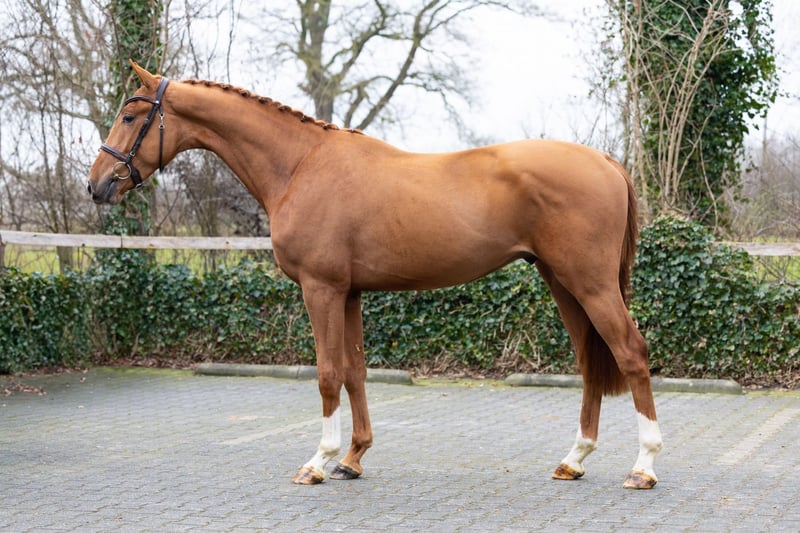 The genetically interesting Grand Prix stallion Epleaser van ‘t Heike is increasingly proving himself as a top sire, as he sired top level offspring such as Kamara van ‘t Heike, Kalinka van de Nachtegaele, and Kassandra van ‘t Heike. This El Profesor 020 Z, originating from Holstein damline 6691, was bred out of a half-sister of the 1.60m-level showjumper Quilazio, with whom Filippo Marco Bologni has achieved placings in multiple Grand Prix and Nations Cup competitions. Dam Nachtbluete W herself competes with Rianne Nalis at international 1.35m-level. In addition, granddam T-Calazia has foaled the 1.40m-level performers Lennox W and Euphoria HST and is herself a half-sister to the 1.50/1.60m horses Cim Christo and Candyman Mobilcom.