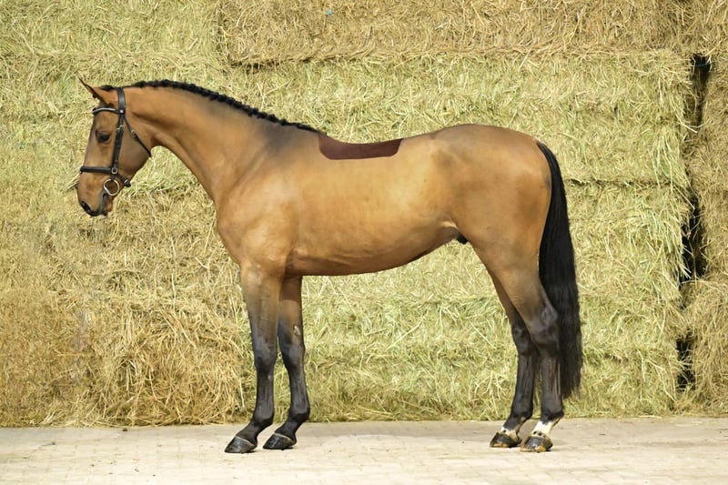 With this impressive stallion by Eldorado van de Zeshoek, we present one of the true highlights of the auction. Eldoson Domm has a beautiful model and a striking, expressive appearance. His movement shows both power and suppleness, making him an eye-catching horse in every aspect. On the dam’s side we find Phin Phin, Kashmir van ’t Schuttershof, and Iroko—stallions that have all proven themselves in both sport and breeding. Further down the line, there is a strong presence of performance and quality throughout the pedigree. Over the jumps, Eldoson Domm reveals his true specialty: he jumps quickly off the ground, shows great athletic ability, is extremely careful, and has excellent awareness. He is already broken in and rides pleasantly, offering three good gaits and plenty of natural balance. In the case of direct export to non-EU countries, VAT is no longer applicable (21% becomes 0%). If the export is delayed (but happens as soon as possible), the VAT will be refunded after we have received the official export document (which is drawn up by customs).