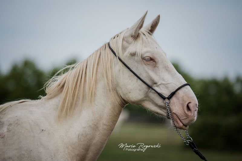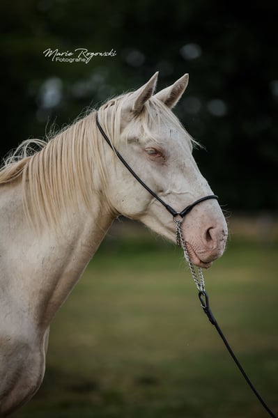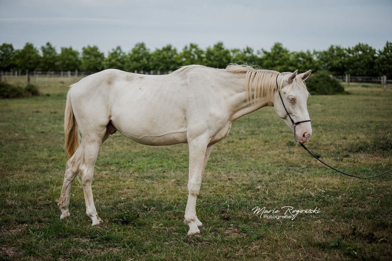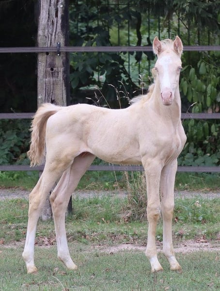 Warmblood stallion | Perlino | born 2022 | currently growing Zangersheide main studbook + IFCE (Facteur Selle Français) Genetics: E/_, A/_, CR/CR Castration possible on request WIN MY HEART Z is a young, currently still lanky young stallion, very friendly, curious and easy to handle. He is growing up in a mixed-age group of young stallions, knows daily contact with people and is familiar with basic procedures. Sire: WHITE WINE GF with proven lines via WELTMEYER, WOERMANN, LADYKILLER, NOTAR Dam: PHANTASIA GF, award-winning and proven Oldenburg mare in buckskin, with internationally successful offspring Dam's sire: NARISTON OLD - sporty Oldenburg stallion with solid heredity Bred in the seventh generation at his own stud (Falkenhorst Stud, since 1978), with a high Hanoverian content and a dash of English thoroughbred Many breeding paths are open to him: e.g. KWPN, Zangersheide, Royal Belgium Warmblood, Anglo European Studbook.