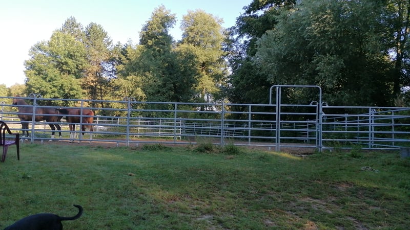 Wir bieten Reithalle, Außenplatz, Winterfreilauf, Wiesen.