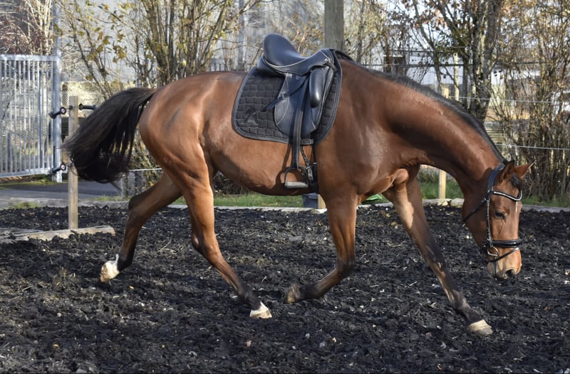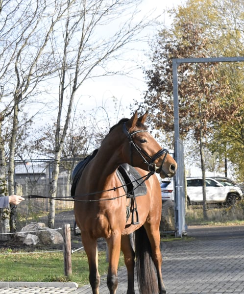 Versatile Verband Premium Mare This elegant mare is by Syriano, the successful son of Gribaldi. She comes from a dam line with Verbandprämienstute status, with lineage including Kaiserkult x King Arthur. This mare impresses with three good basic gaits, absolute confidence, and strong nerves. She always aims to please and learns incredibly quickly. She is well-schooled, comfortable in the riding arena and indoor hall, has been ridden in the field, traveled out with a trailer, and is familiar with everything a young horse needs to experience. She currently measures approximately 16.1 hh. She has always been healthy and is looking forward to a sporting future. Health check and 18 X-ray images are available. Further information and videos gladly provided upon request with contact details.
