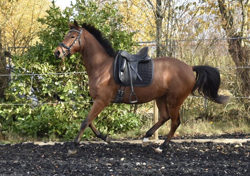 Jument polyvalente primée en Verband Cette élégante jument est issue de Syriano, le fils à succès de Gribaldi. Elle descend d'une mère inscrite en Verband, par Kaiserkult x King Arthur. Cette jument se distingue par ses trois allures de base solides, sa confiance absolue et sa stabilité nerveuse. Elle cherche toujours à plaire et apprend incroyablement vite. Très bien dressée, elle a été travaillée en carrière et en manège, a déjà été en extérieur, transportée en van et connaît tout ce qu’un jeune cheval doit savoir. Elle a actuellement une taille mesurée à 1,65 m. Elle a toujours été en bonne santé et se réjouit d’un avenir sportif. Un contrôle vétérinaire complet et 18 radiographies sont disponibles. Pour plus d’informations et vidéos, n’hésitez pas à nous contacter.